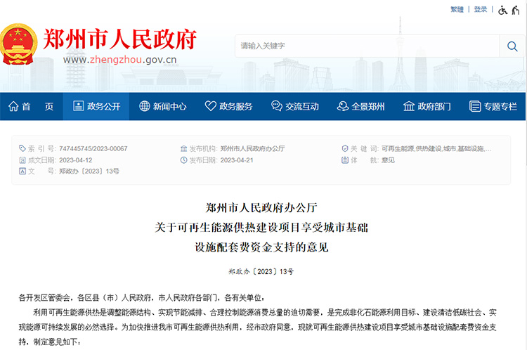 提升可再生能源供熱利用 鄭州將對相關(guān)建設(shè)項(xiàng)目提供配套資金支持