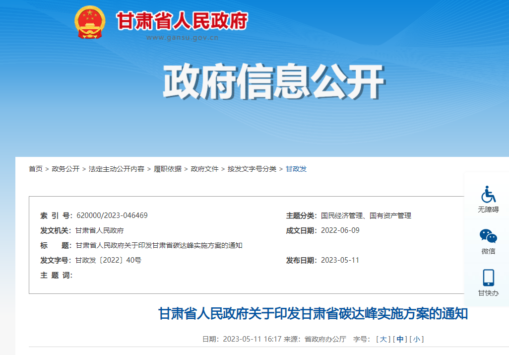 促進(jìn)降碳、減污、擴(kuò)綠、增長協(xié)同推進(jìn) 甘肅省發(fā)布碳達(dá)峰實(shí)施方案