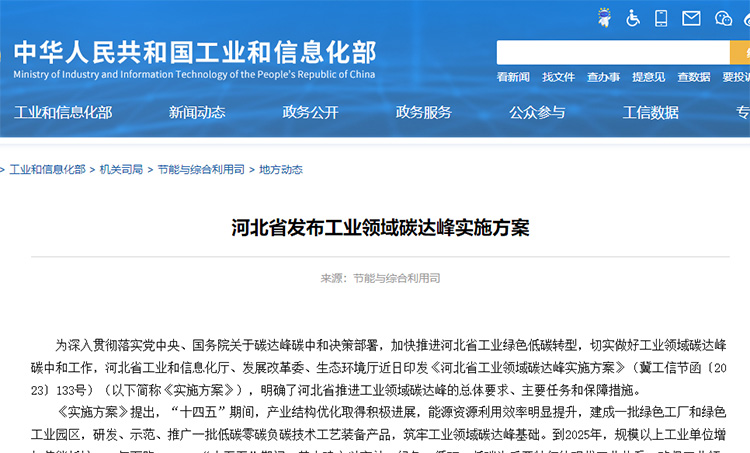 河北省發(fā)布工業(yè)領(lǐng)域碳達(dá)峰實(shí)施方案 切實(shí)推進(jìn)全省工業(yè)綠色低碳轉(zhuǎn)型