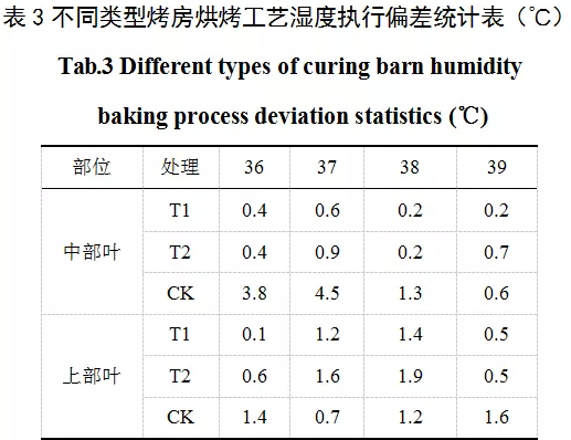 在溫度達到38℃、42℃、47℃(中部葉)和48℃(上部葉)、54℃時,測定實際溫濕度與目標(biāo)溫濕度的偏差。