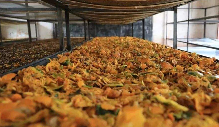 加工過程中要將瓜蔞的皮和籽分開,就需要把成熟的瓜蔞直接整體烘干,但是現(xiàn)在的傳統(tǒng)晾曬烘干效率較慢,也受天氣影響,烘干不均勻,操作時可能會造成瓜蔞表皮和瓜蔞籽損傷破裂,從而降低其藥效,因此引進一種高效的瓜蔞烘干設備顯得尤為重要。