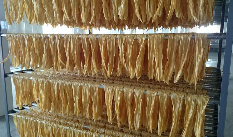 2. 此階段將腐竹放入烘干房,繼續(xù)以60攝氏度烘干兩小時,等待水分降至15%-20%;