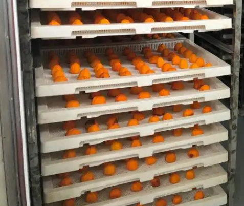 1. 將柿子洗凈去皮后擺放到物料盤上,放入烘干房準(zhǔn)備烘干;