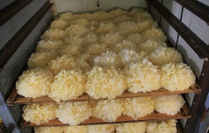 4. 將烘干房溫度升至50-60攝氏度,烘干6-10小時(shí),當(dāng)耳片接近干燥,耳基尚未干透時(shí),再將溫度降低至30-40攝氏度,直至烘干,烘干的銀耳成品含水量在10%-12%之間。