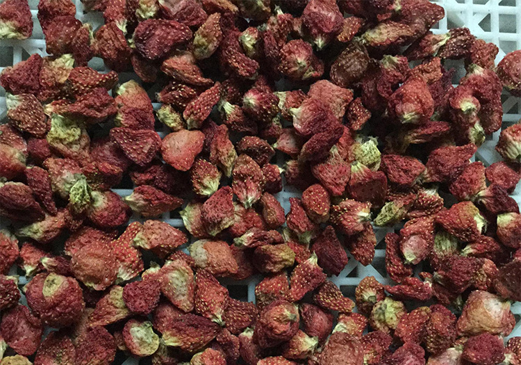 1. 采用多溫區(qū)分層控溫,速度可調(diào)、自動控制,烘制出的草莓果干顏色為絳紅色,大小均勻,外形完整,具有草莓鮮果的芳香,口味酸甜,口感香脆;